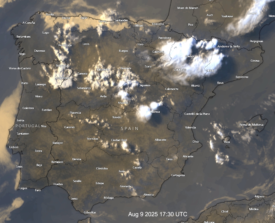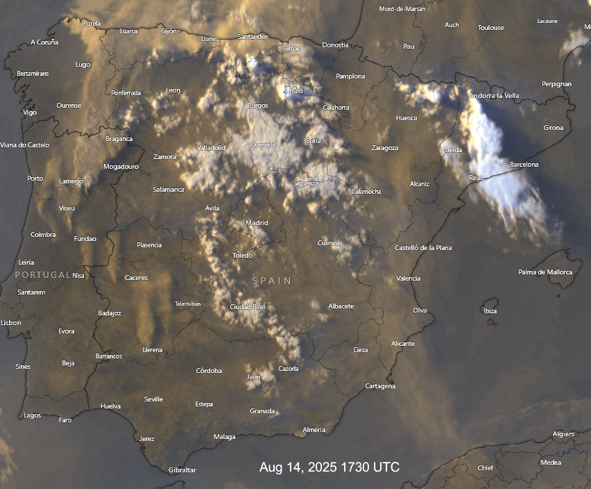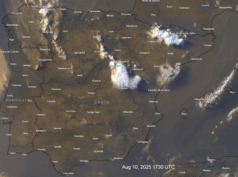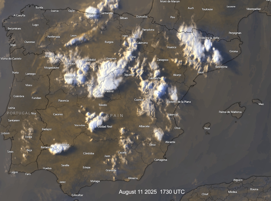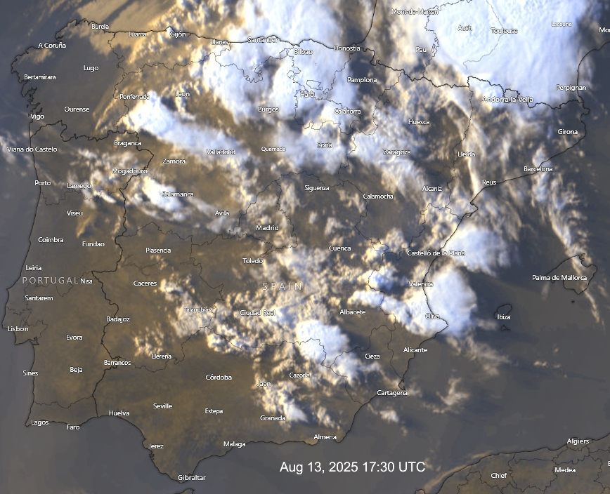Animation of satellite imagery over Spain on August 12, 2025. Source: EUMETSAT/Windy.